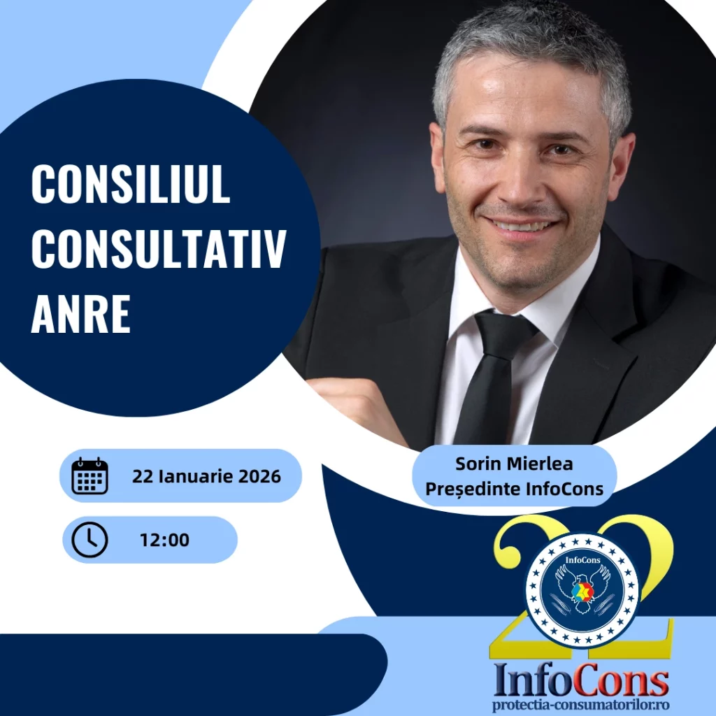 Sorin Mierlea , Președintele InfoCons Protecția Consumatorilor , participă la Consiliul Consultativ al ANREacum o săptămână