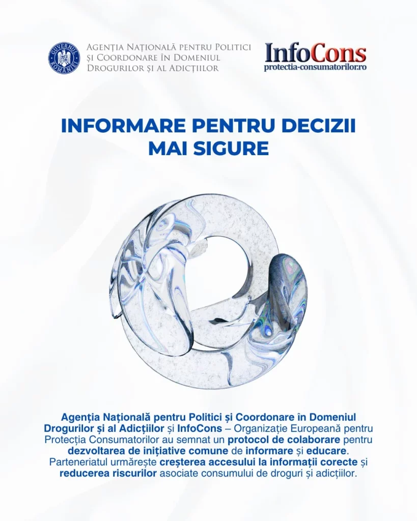 InfoCons Protecția Consumatorilor și Agenția Națională pentru Politici și Coordonare în Domeniul Drogurilor și al Adicțiilor anunță semnarea unui protocol de colaborare !acum o zi