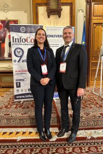 Doamna Kristi O’Malley , reprezentant al Departamentului de Justiţie al Statelor Unite ale Americii și reprezentant al Ambasadei Statelor Unite ale Americii in Romania , și domnul Sorin Mierlea, Președintele InfoCons Protecția Consumatorilor , la evenimentul organizat cu ocazia Zilei Mondiale a Proprietății Intelectuale.