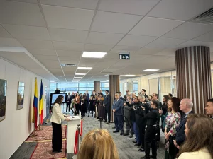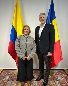Ceremonia se desfășoară în prezența distinsă a E.S. Divia Cepeda Rojas, Ambasadorul Republicii Columbia, și a E.S. Yolanda Villavicencio, Ministrul Afacerilor Externe al Republicii Columbia, marcând un moment diplomatic important și consolidând relațiile bilaterale dintre Columbia și România.