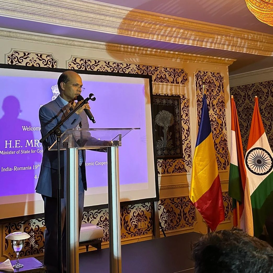Recepția este organizată în onoarea unei delegații conduse de Excelența Sa, domnul Jitin Prasada, Ministru de Stat pentru Comerț și Industrie.