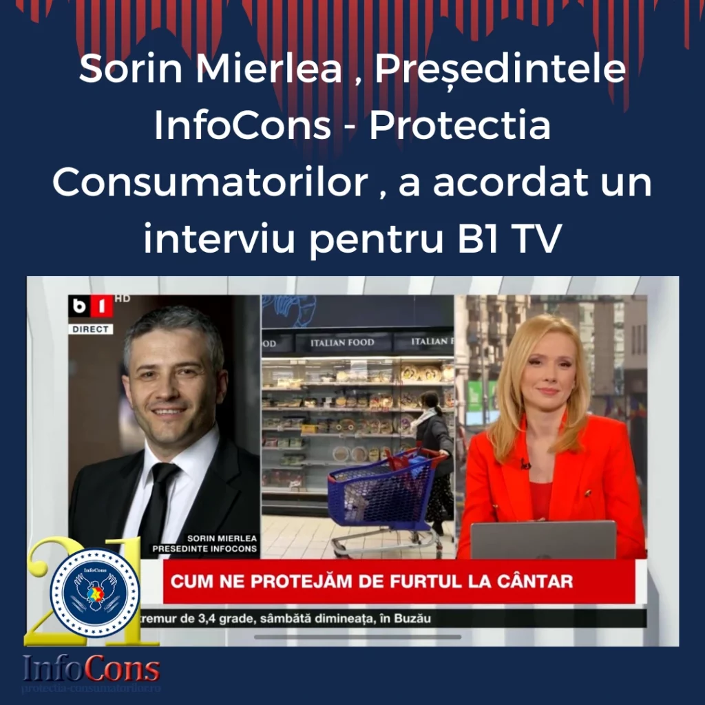 Sorin Mierlea , Președintele InfoCons – Protectia Consumatorilor , a acordat un interviu pentru B1 TV