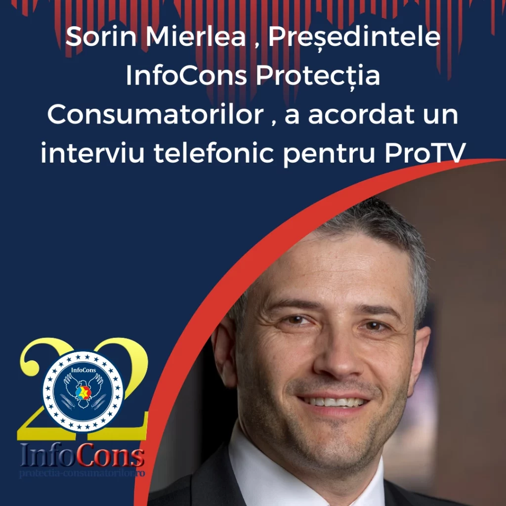 Sorin Mierlea , Președintele InfoCons Protecția Consumatorilor , a acordat un interviu telefonic pentru ProTV