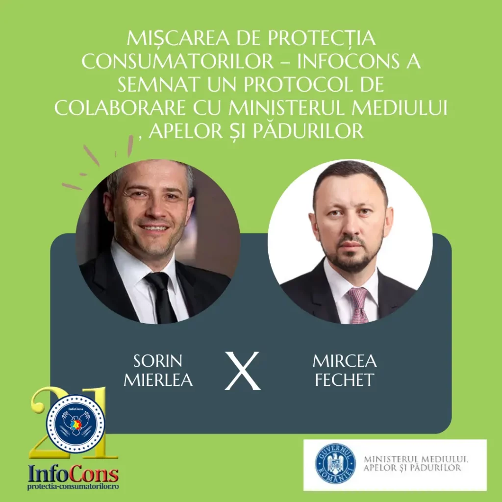 Mișcarea de Protecția Consumatorilor – InfoCons a semnat ieri un Protocol de Colaborare cu Ministerul Mediului , Apelor și Pădurilor