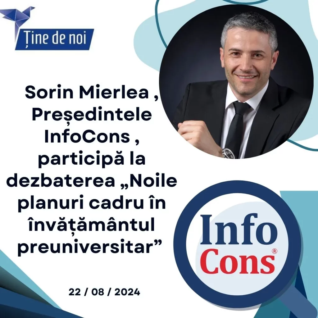 Domnul Sorin Mierlea , Președintele InfoCons , participă la la dezbaterea online „ Noile planuri cadru în învățământul preuniversitar ”